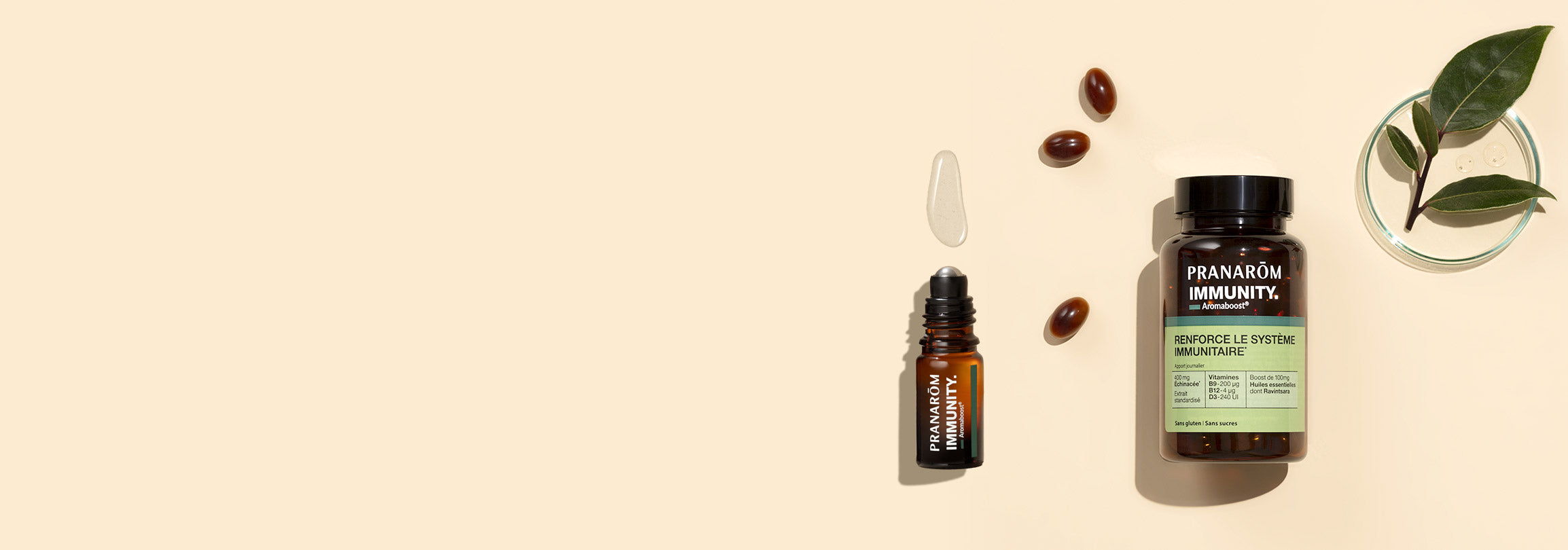 Booster l'organisme avec le roll-on olfactif IMMUNITY aux huiles essentielles bio*. Un geste simple et rapide pour se protéger en toutes saisons.