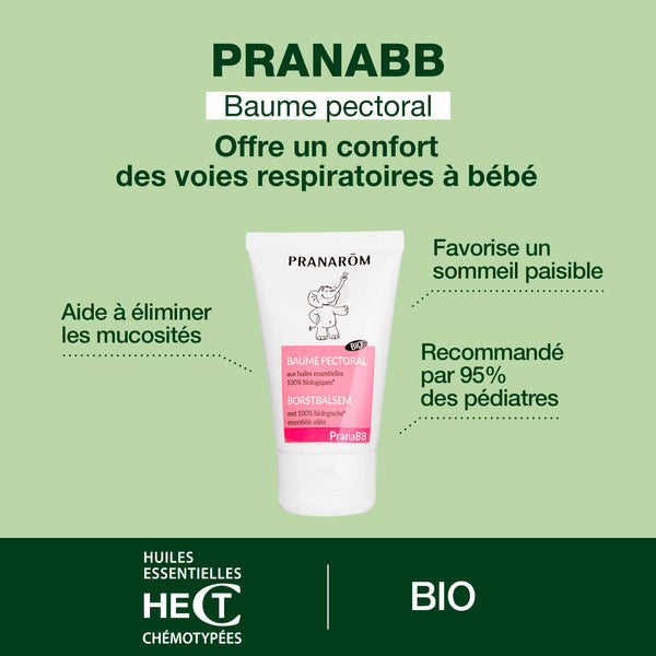 Before using any topical product, it is advisable to perform a patch test on the inside of your elbow to check for tolerance. Pranarôm also recommends following the essential rules for using essential oils with babies: never before 3 months, never orally before 6 years and always in appropriate dilution when cutaneous use is planned.