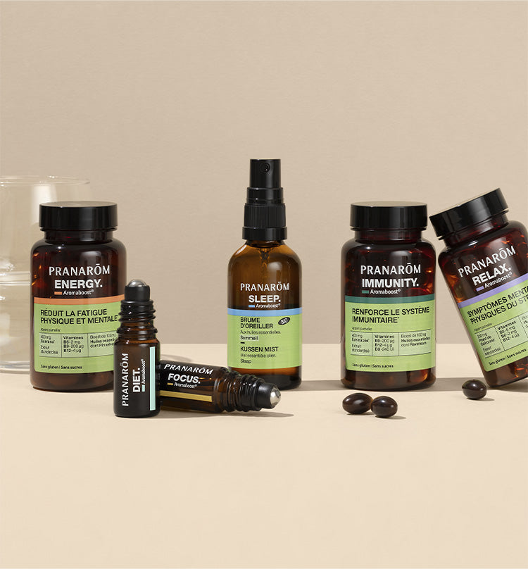 Votre rituel de santé en 3 étapes pour retrouver énergie et vitalité. Conçue pour aider à réduire la fatigue physique et mentale, la gamme Aromaboost Energy offre un soutien durable pour maintenir votre énergie tout au long de la journée.