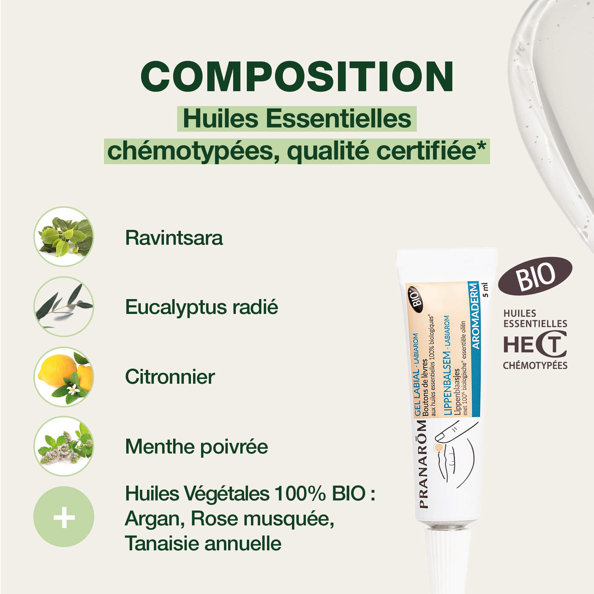 Spécialement formulé pour répondre aux désagréments cutanés localisés sur les lèvres, le Gel labial LABIAROM s’utilise dès les premières sensations de picotements annonciatrices d’un bouton. Sa texture légère et discrète pénètre rapidement, apportant un effet rafraîchissant et calmant immédiat.