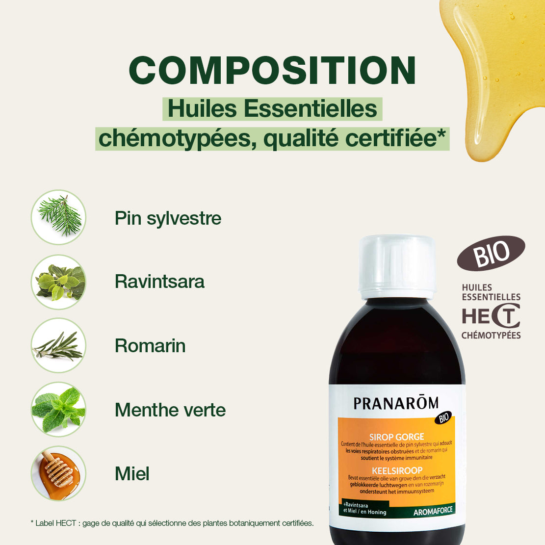 Sirop gorge BIO au miel et Ravintsara - Bio