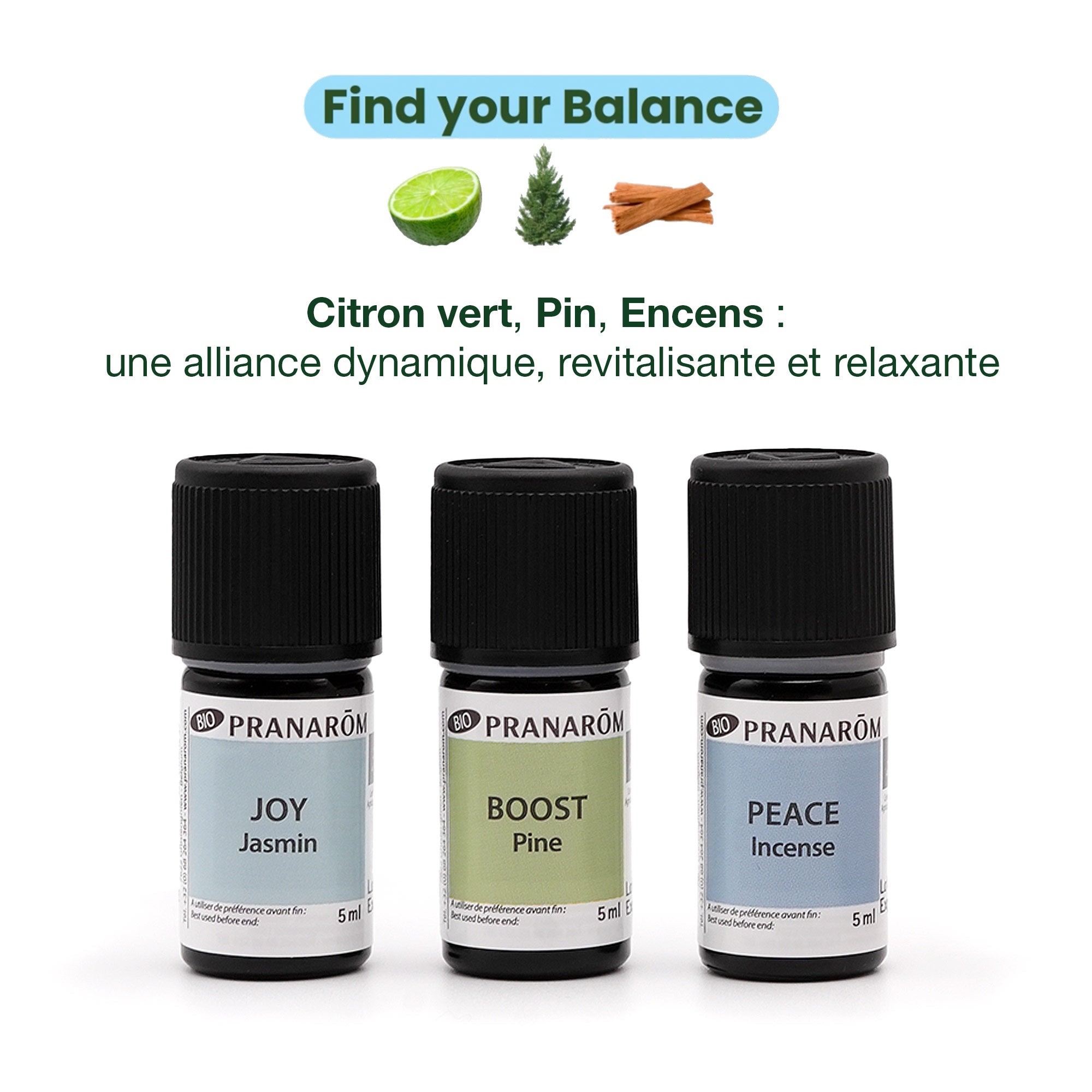 Réunit 3 synergies d'Huiles Essentielles prêtes à diffuser chez soi en fonction de son état d'esprit du moment.